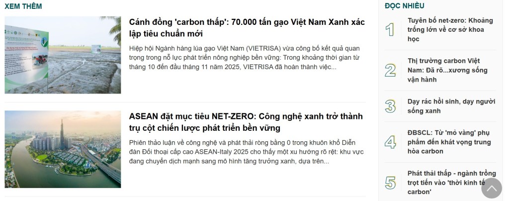 Sáng nay, tôi được cập nhật tin vui là bài báo có tựa đề “Tuyên bố net-zero: Khoảng trống lớn về cơ sở khoa học”, xuất bản trên Nông Thôn Việt từ tháng 8 năm ngoái, nhưng hiện vẫn đứng TOP1 trong danh mục được đọc nhiều nhất. Điều này cho thấy chủ đề không chỉ mang tính thời sự mà còn được cộng đồng doanh nghiệp thực sự quan tâm và đánh giá cao. Bài báo này sử dụng dữ liệu nghiên cứu mới nhất do tôi thực hiện trong năm 2025.
