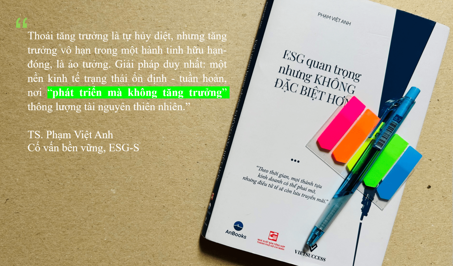 Việt Anh cũng đưa ra một góc nhìn mới khi so sánh ESG với CSR (Corporate Social Responsibility – Trách nhiệm xã hội doanh nghiệp). ESG không chỉ là bản nâng cấp của CSR mà còn đặt ra những tiêu chuẩn quản trị cao hơn, bền vững hơn cho doanh nghiệp. Cuốn sách nhấn mạnh rằng ESG không phải là “đặc biệt” vì bản chất của nó nên là điều hiển nhiên, là nhu cầu tất yếu để phát triển bền vững.